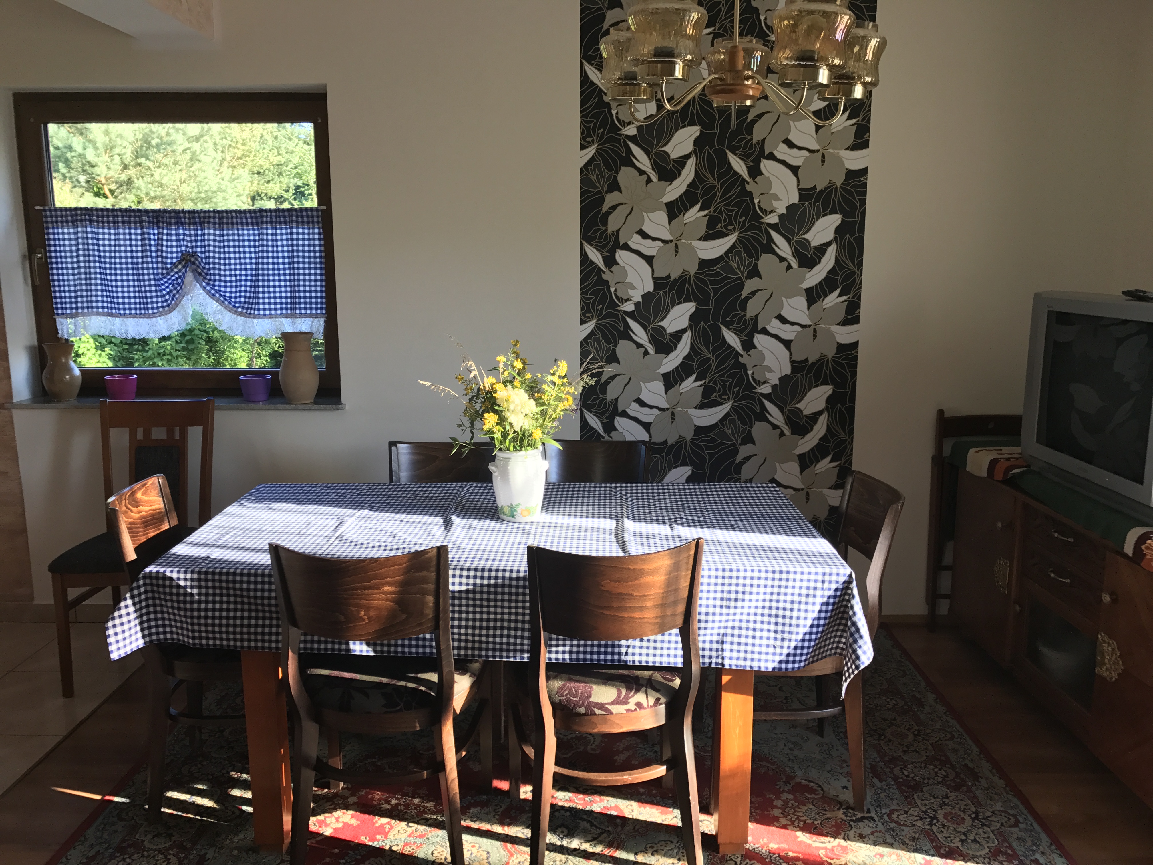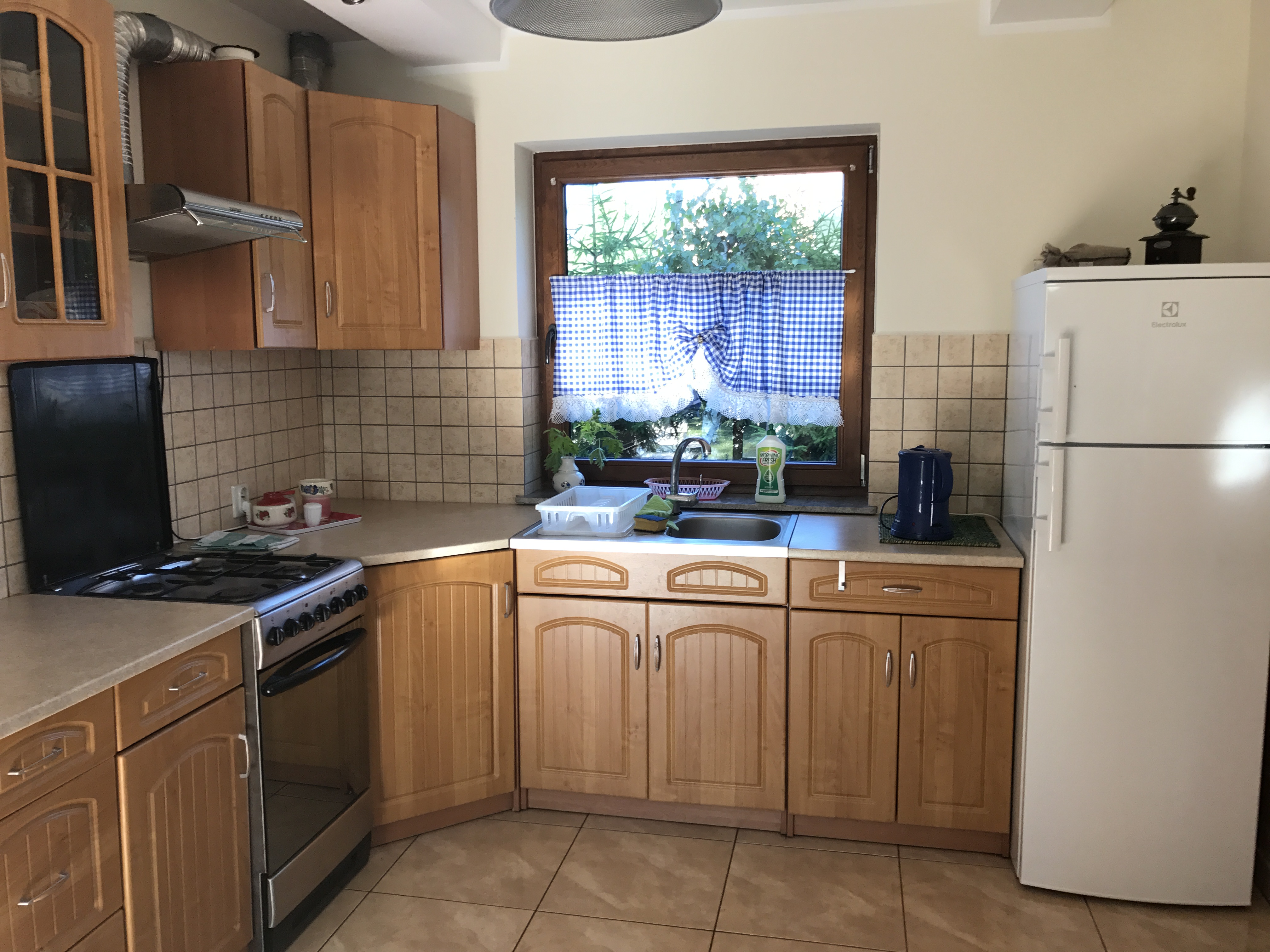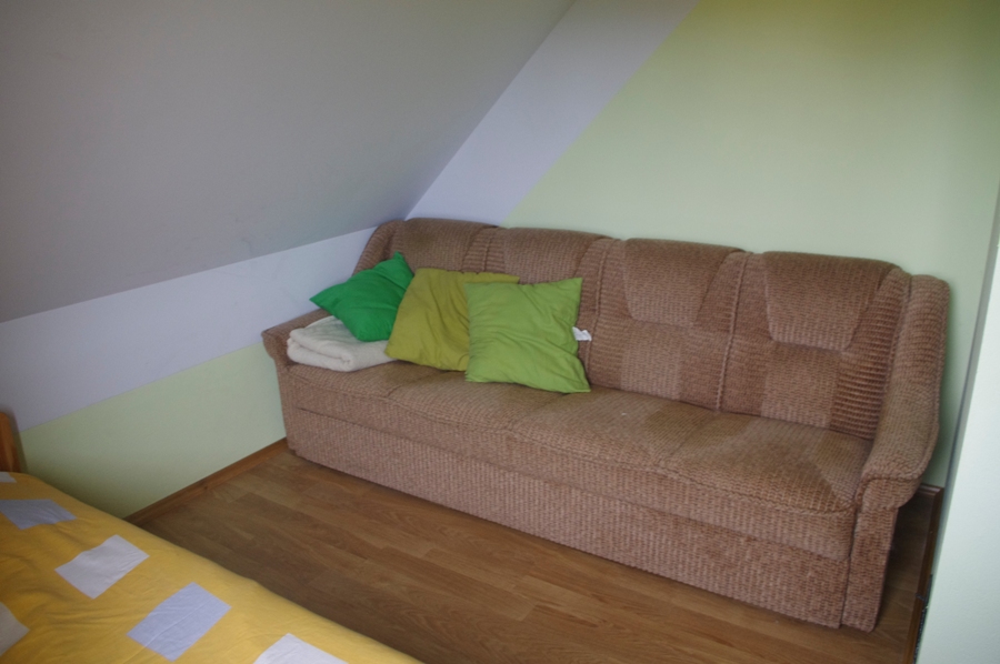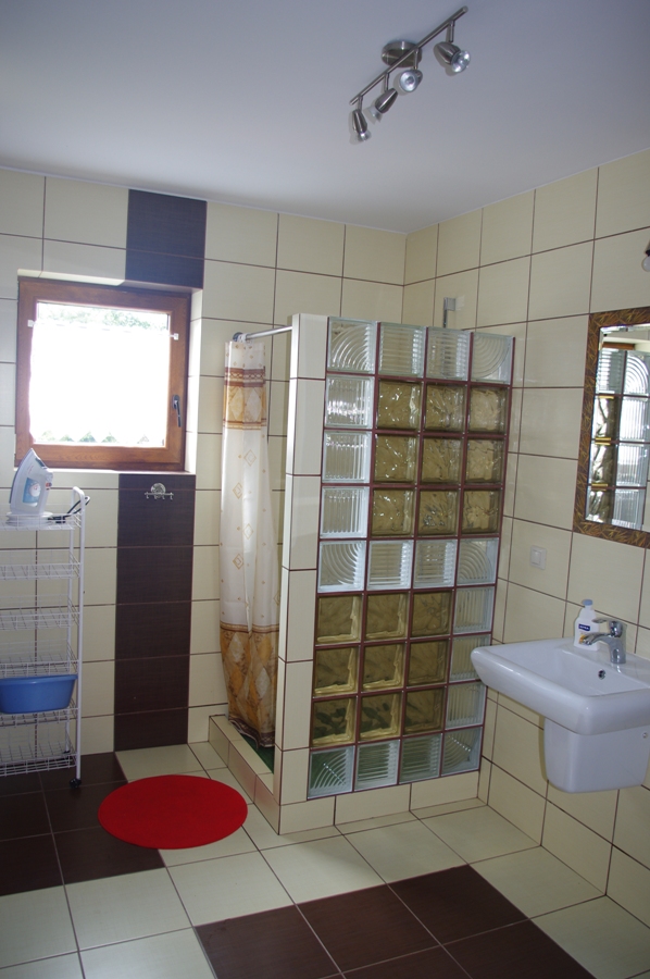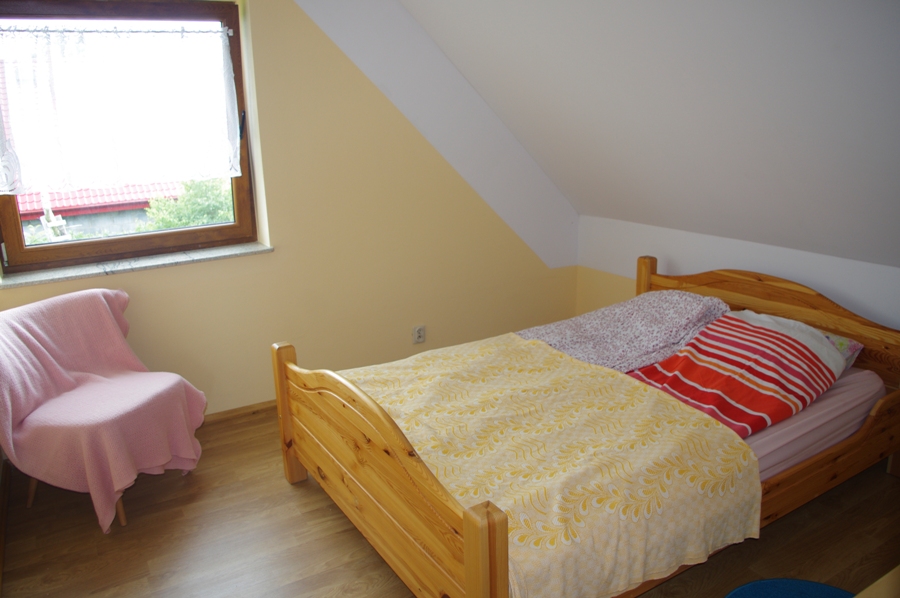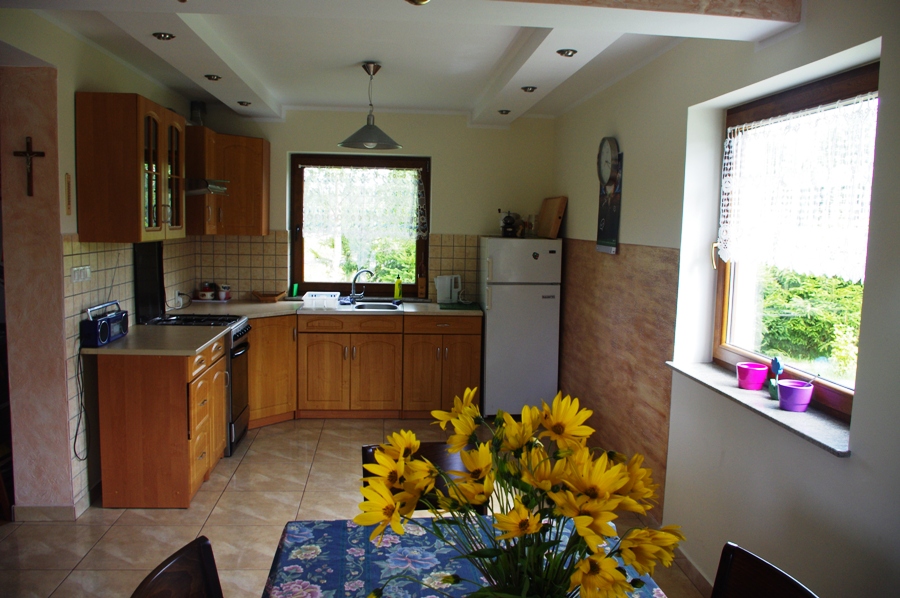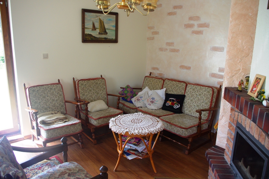 Do dyspozycji Gości są 4 pokoje dwuosobowe na piętrze, łazienka z prysznicem i WC. Natomiast na parterze znajduje się salon z kominkiem i częścią wypoczynkową, połączony z jadalnią oraz wyposażoną kuchnią. Na parterze jest druga przestronna łazienka z prysznicem, umywalką i WC.