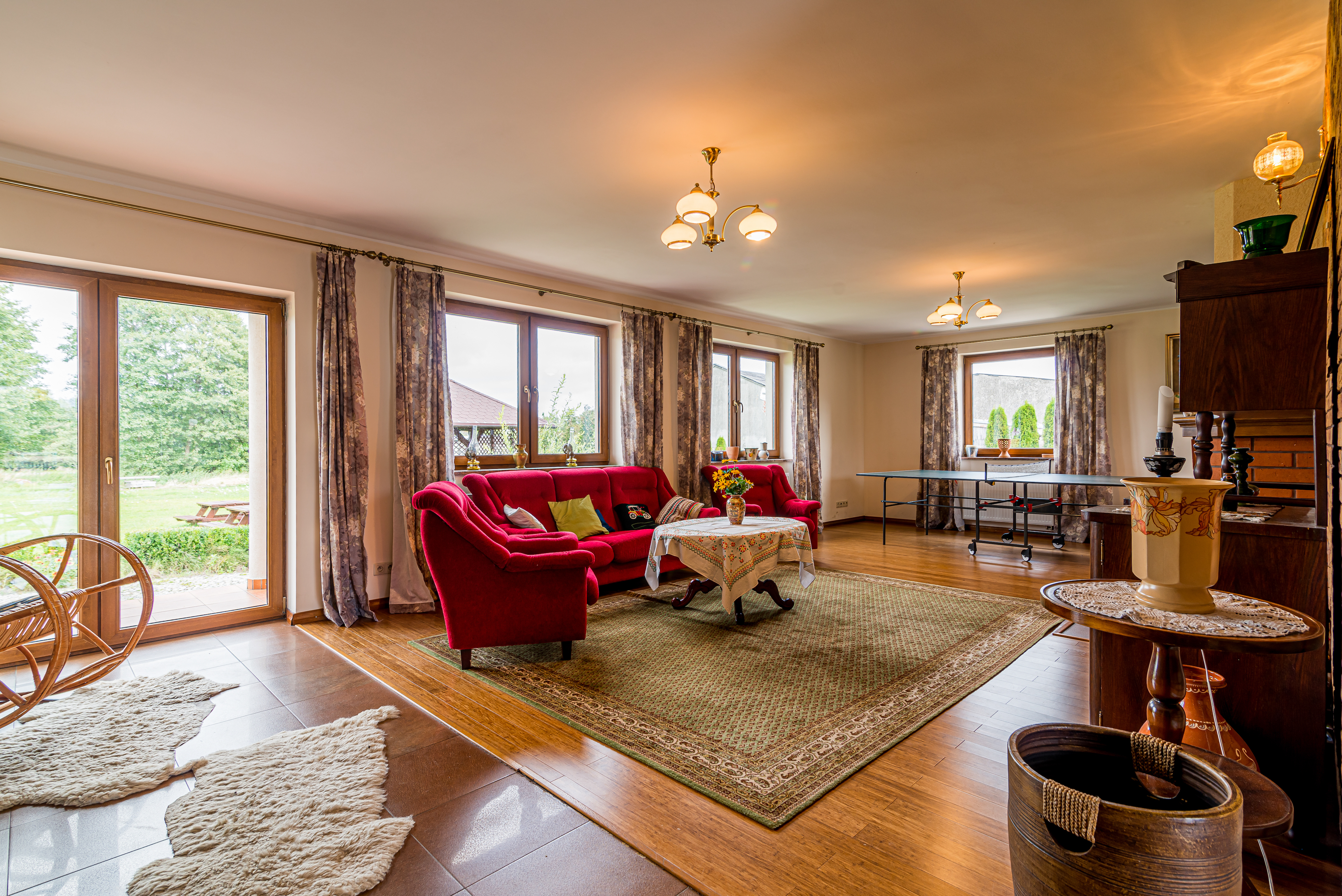 Wokół Bursztynowego Dworku przestronny ogród, gdzie każdy z Gości znajdzie miejsce do wypoczynku dla siebie. Dostępne ławy ogrodowe, leżaki do wypoczynku, hamaki, plac zabaw dla dzieci, miejsce na ognisko, grill, miejsce do gry w piłkę siatkową, parking bezpośrednio na posesji.